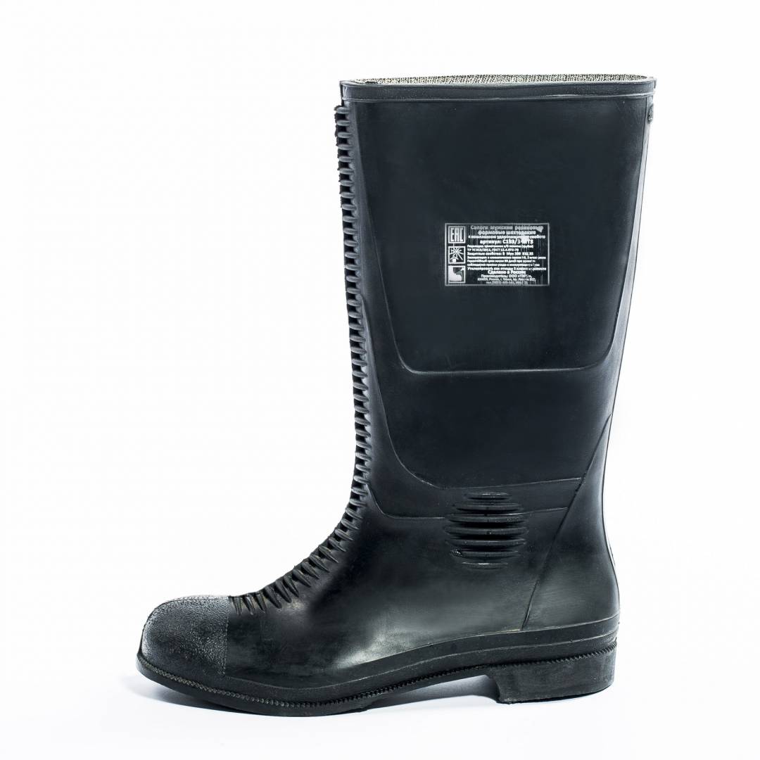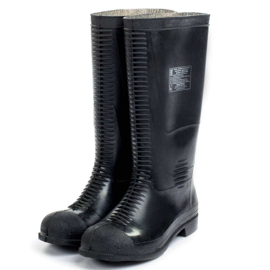 Сапоги резиновые шахтерские предназначены для защиты ног от шахтных вод, грязи, механических воздействий – ударов, проколов, порезов, изгибов, трения, химических факторов. Состоят из резинового верха, текстильной подкладки, снабжены ударозащитными элементами в наиболее травмоопасных частях: металлического ударозащитного подноска 200 Дж, с антипрокольной металлической стелькой с сопротивлением сквозному проколу 1200 Н, защитных ребристых усилителей по передней поверхности и в области голеностопного сустава, рифленой подошвы, износостойкого каблука. Шахтерские сапоги изготовлены из специальной резины, обладают повышенной износостойкостью, соответствуют всем требованиям ГОСТа.